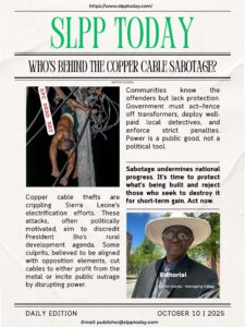 Why Are Copper Electricity Cables Being Cut in Sierra Leone Posted By: Editorial Staff October 10, 2025 Why Are Copper Electricity Cables Being Cut in Sierra Leone?